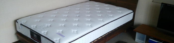 マットレスはサータの代表的なマットレス・ポスチャーノーマルのコイルを平行配列にすることで適度なソフトさのあるマットレスです。サータのマットレスの特徴は、5.8インチ高のポケットコイルを使用したマットレスで両サイド、腰部といった加重の加わるところのポケットコイルの綱線を太くして、場所によって硬さを変えるゾーニングです。詰物もしっかり詰めるタイプが多いです。当店では、サータはじめ様々なメーカーのマットレスを扱っておりますので、是非色々比べに来て下さい。
