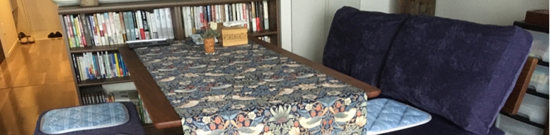 テーブルトップのいちご泥棒がプリントではなく、ジャガードでとても質感がよく、テーブルとの相性がきれいでした。