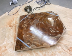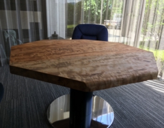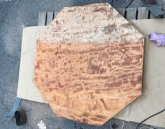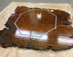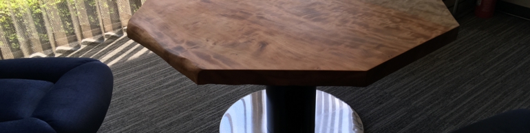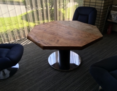 直径1100mmの8角形天板です。1枚板で、円形でとご依頼いただき、捜したのですが奥行きが1100mmの一枚板は見つかりませんでした。