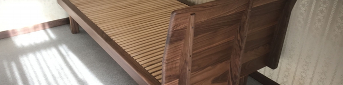 今回I様にご注文いただきましたタイプは、ウォールナット材、座面高40cm、ふとん用スノコタイプ、ヘッドボード付です。クチュールは敷き布団でお休みになりたい方にも大変人気がございます。