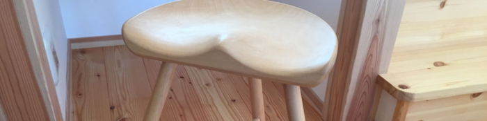 ヨーロッパで伝統的なデザインのスツールに横の桟木をプラスして強度を高く、現代的に仕上げられています。通常は無塗装の状態ですが、今回のチェアは当店にてオイルフィニッシュにしております。オイルフィニッシュの一番の利点は、サンドペーパーで加工することが出来る事です。脚や桟木は使っていると汚れが付きます。それをサンドペーパーで落としてオイルを入れてあげれば、きれいになります。使い込んで味わいを楽しみながら、キズや汚れのケアがご自身で可能です。