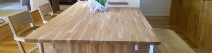 ダイニングチェア&ベンチは、飛騨のイバタインテリアSignの肘付きタイプの特注です。通常はオークxウォールナットのコンビですが、今回は、A様のご要望により特注でオーク材のみのナチュラル色です。