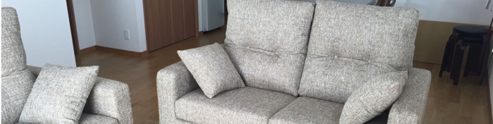 ソファは、コンパクトに見えてゆったりくつろげるリラックスフォームの人気ソファ、ロルカです。お色は定番色のフレンチベージュ、フルカバーリングです。