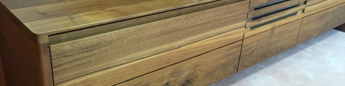 ワイルドな木部の楽しめる常盤家具製作所のVintage(ヴィンテージ)をお選びいただきました。Vintageは、無垢材をふんだんに使いながら、フラットにシャープに仕上げられたシリーズです。こちらはサイズ展開が豊富で、W120/140/160/180/200/220までございます。前板の木目が目通しになっています。取っ手溝の削りや、引き出しの箱の作りがすばらしいです。中央のルーバーは圧巻です。算木のようなルックですが、削り出しです。無垢の風合いを存分にお楽しみいただけます。同シリーズのリビングテーブルは奥行き45cmでお部屋を狭くしません。ちょっとある棚板が便利です。こちらはW90/100/120の3サイズ展開です。常盤家具製作所の製品は、木部の保証10年付きです。