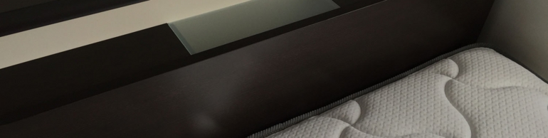 ベッドフレームは、広島はドリームベッドのイーポイントシリーズのキャビネットタイプ、No.253です。脚周りは下の空いたステーションタイプ、ベッドハイは22cmです。
