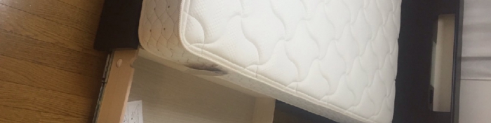 ベッドフレームは、広島はドリームベッドのイーポイントシリーズのキャビネットタイプ、No.253です。今回の脚周りは、BOX(引出し)とノーマルの組み合わせ、ベッドハイは22cmです。