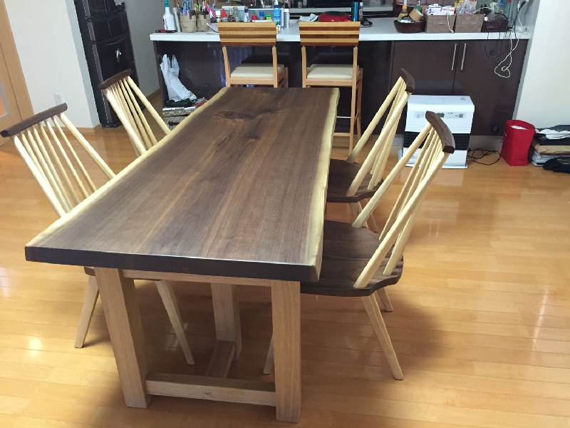 ダイニングにウォールナット一枚板と、アバンティ・アッシュxウォールナットのコンビをお届けさせていただきました。