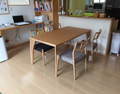 耳の表情がそのままの形のテーブルも、型紙を取って作成するので、ぴったりサイズでお作りすることができます。べったり張りつかないため、テーブルの塗装面を痛めません。