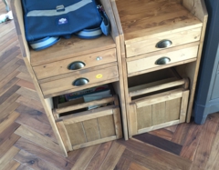 上のお子様にはとても重宝していただいております。上にカバン、引き出しにはペン類、下の箱にはきれいに教科書やドキュメント類が整理して収納されています。