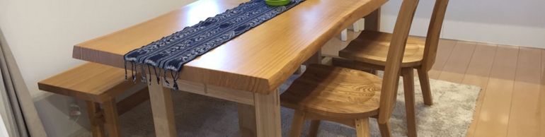 お手持ちの、タモ無垢一枚板を、座卓からダイニングテーブルとしてお使いになるという事で、当店に椅子をお探しにご来店頂きました。